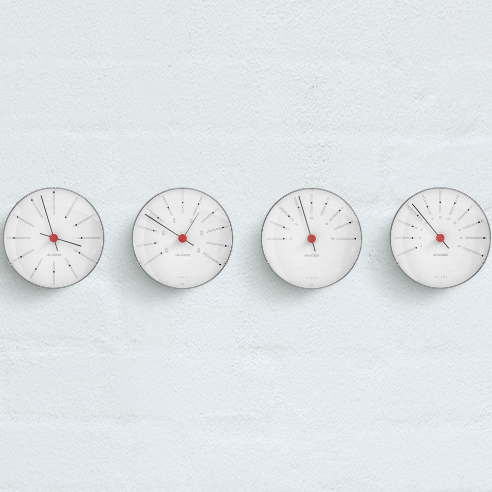 Not only does the Arne Jacobsen weather station provide an overview of relative humidity, temperature, air pressure and the time – this weather station is beautiful, simple and Danish design for your wall into the bargain! Renowned in Denmark and internationally, architect Arne Jacobsen made his distinctive mark on everything from architecture to interior design, furniture design and graphic art.