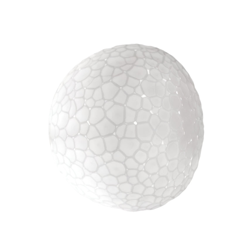 The double-layer artistic glass diffuser is handmade using the mould-blowing craft technique followed by grinding, with the end result resembling the age-old Murano art of ‘battuto’ glass with its textured, beaten look.