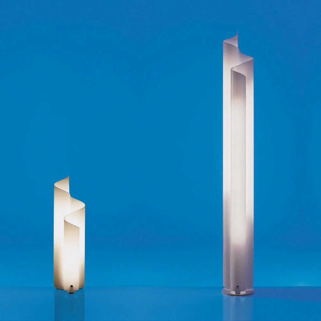 The lamp was designed by Vico Magistretti in the 1970s and was distributed by Artemide in the late 1990s. The lamp emits a soft and diffused light, while the folds create a game of shadows onto the diffuser itself, highlighting the curves.