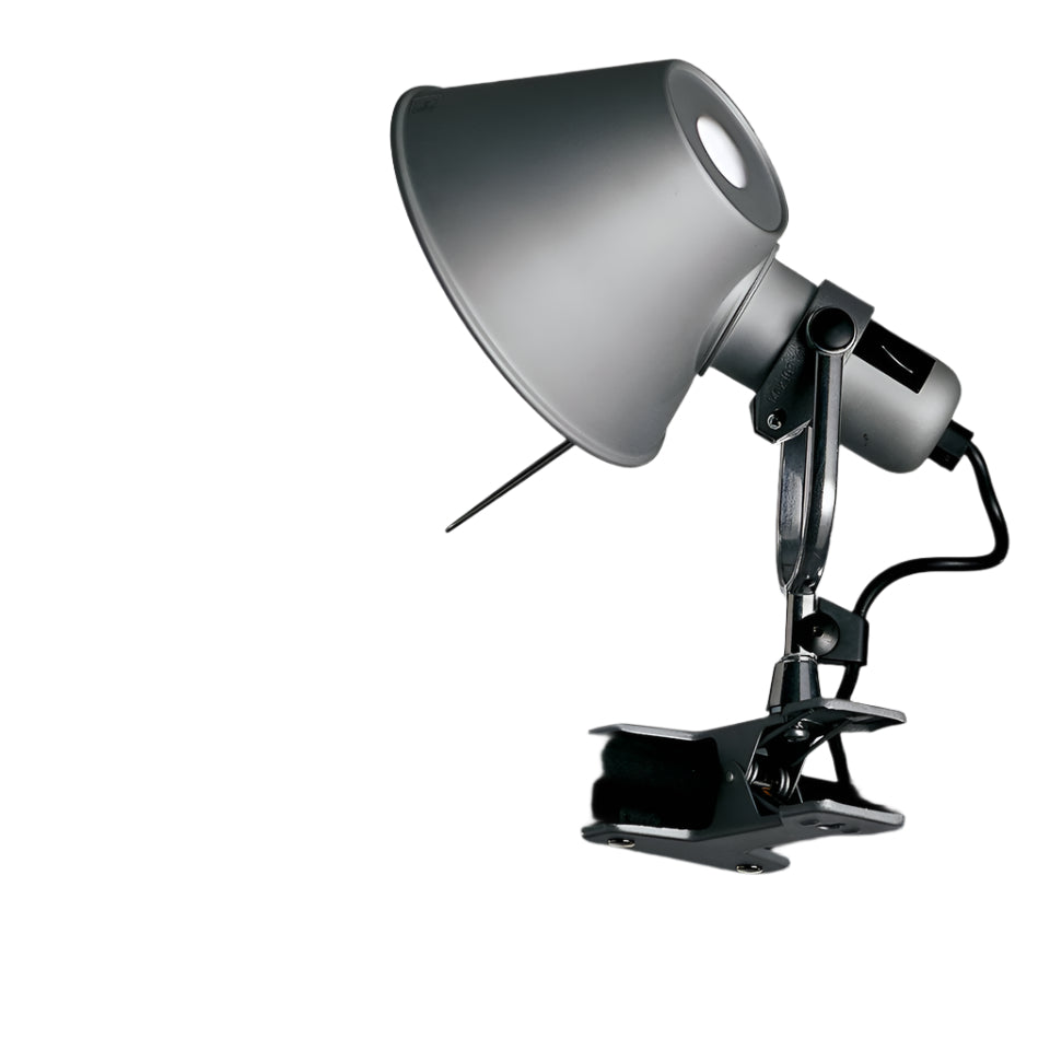 The iconic head of the Tolomeo lamp becomes an instrument of light which can be fixed anywhere thanks to a practical clip. Sustainable and timeless, it is perfect for lighting any living or work space.