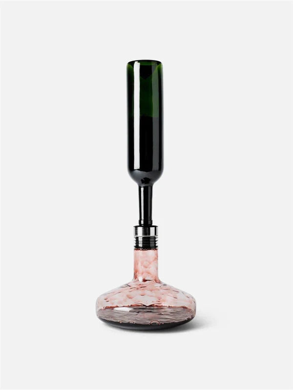 Simply press the decanter on to the top of an opened bottle of wine and flip it over so the wine pours into the decanter. You can serve the wine directly from elegant carafe, or tip it upside again to serve from the original wine bottle.