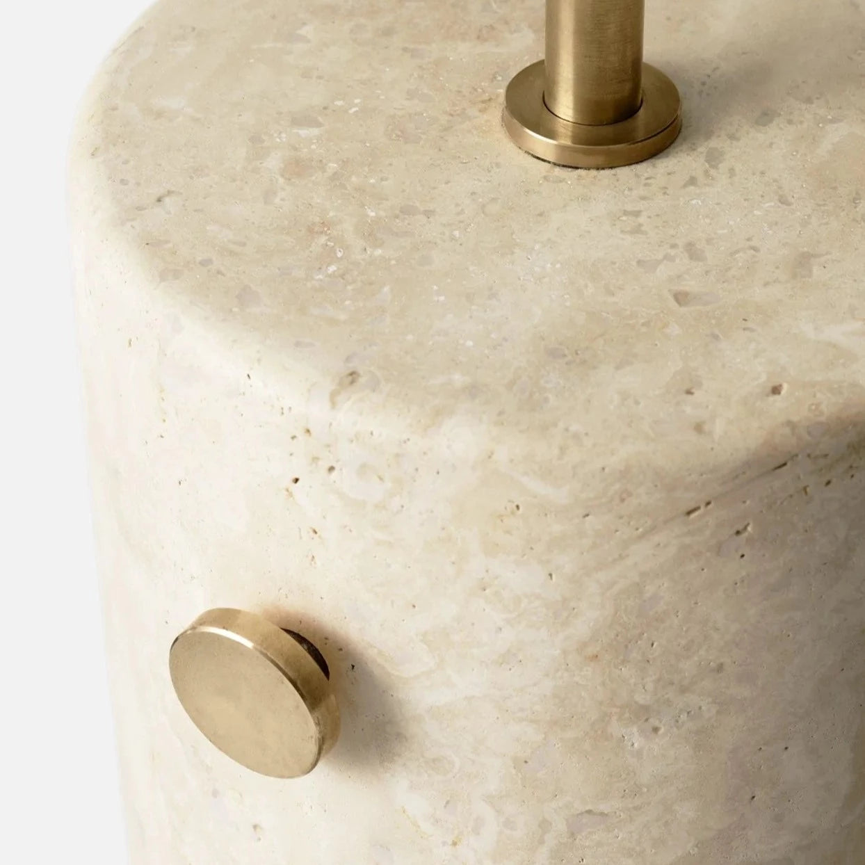 | Bronzed Brass or Brushed Brass fittings Beige Travertine Stone or White Carrara Marble base Opal Glass shade Dimmer knob on base Light Source: E27, 220V, 8W LED Bulb (included) |