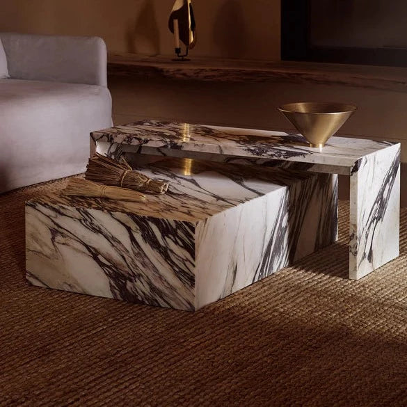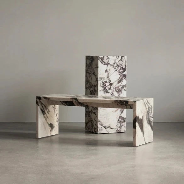 Plinth Bridge has a classic silhouette and modern material appeal. Designed for use independently as well as in combination with the Plinth Grand and Plinth Low podiums – forming a bridge across the low-slung designs for elevated surface space – the sleek design is offered in a range of beautiful, natural materials: from classic White Carrera marble and the intriguing purple-veined Calacatta Viola to sand-coloured Kunis Breccia stone.