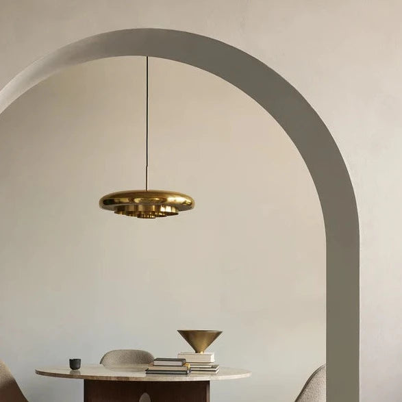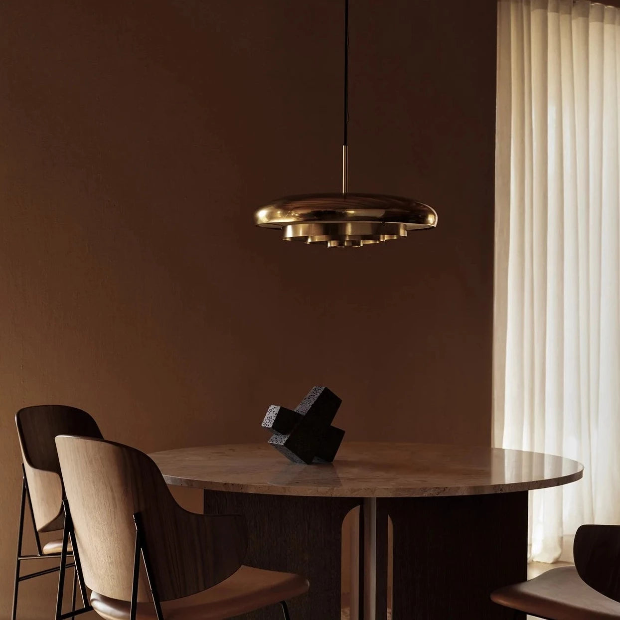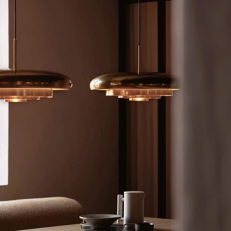 Designed in the 1950s by Alf Svensson and Yngvar Sandström, Resonant is as relevant today as ever. The mid-century pendant lamp is both striking and simple, shaped from polished brass into four concentric shades that direct glare-free light downwards.