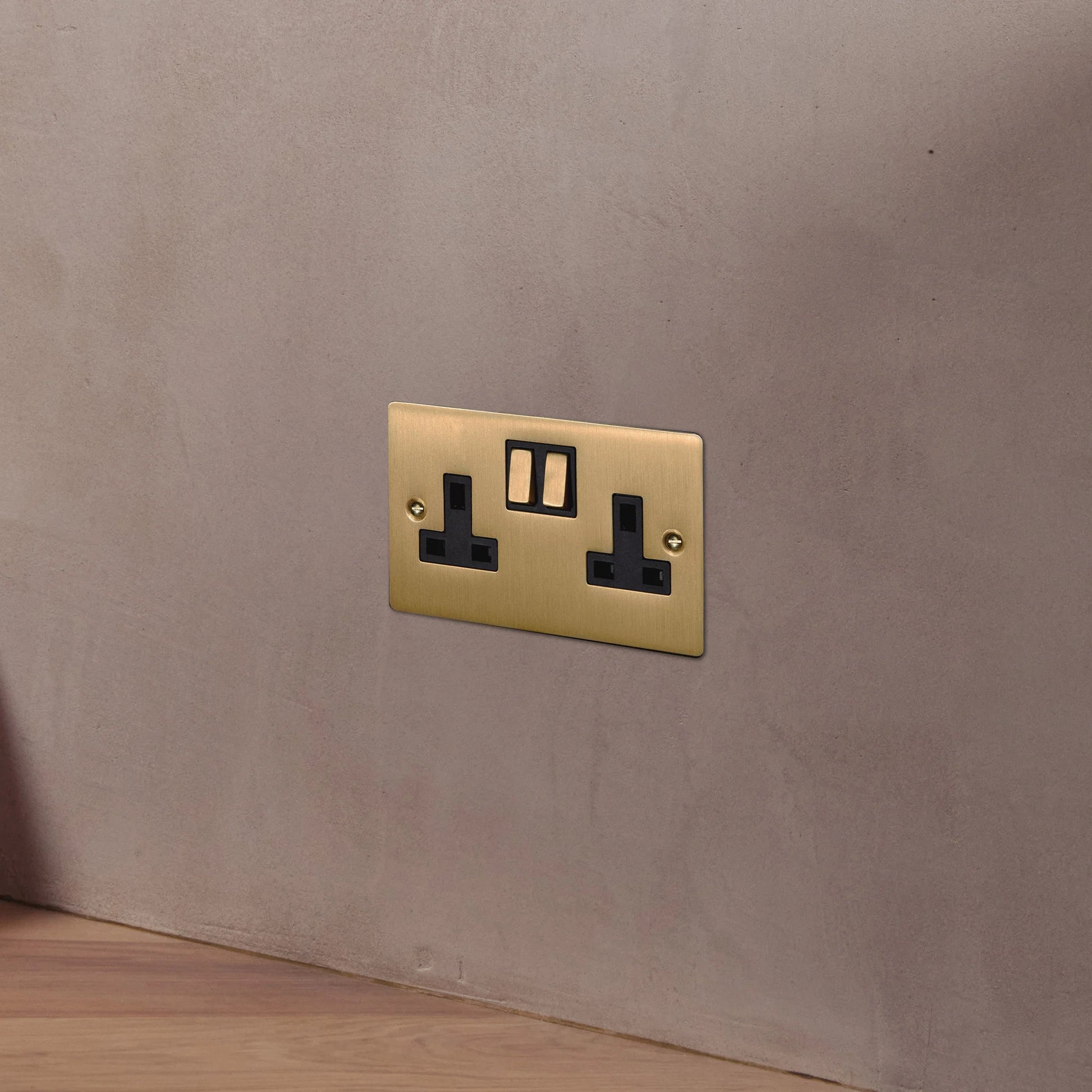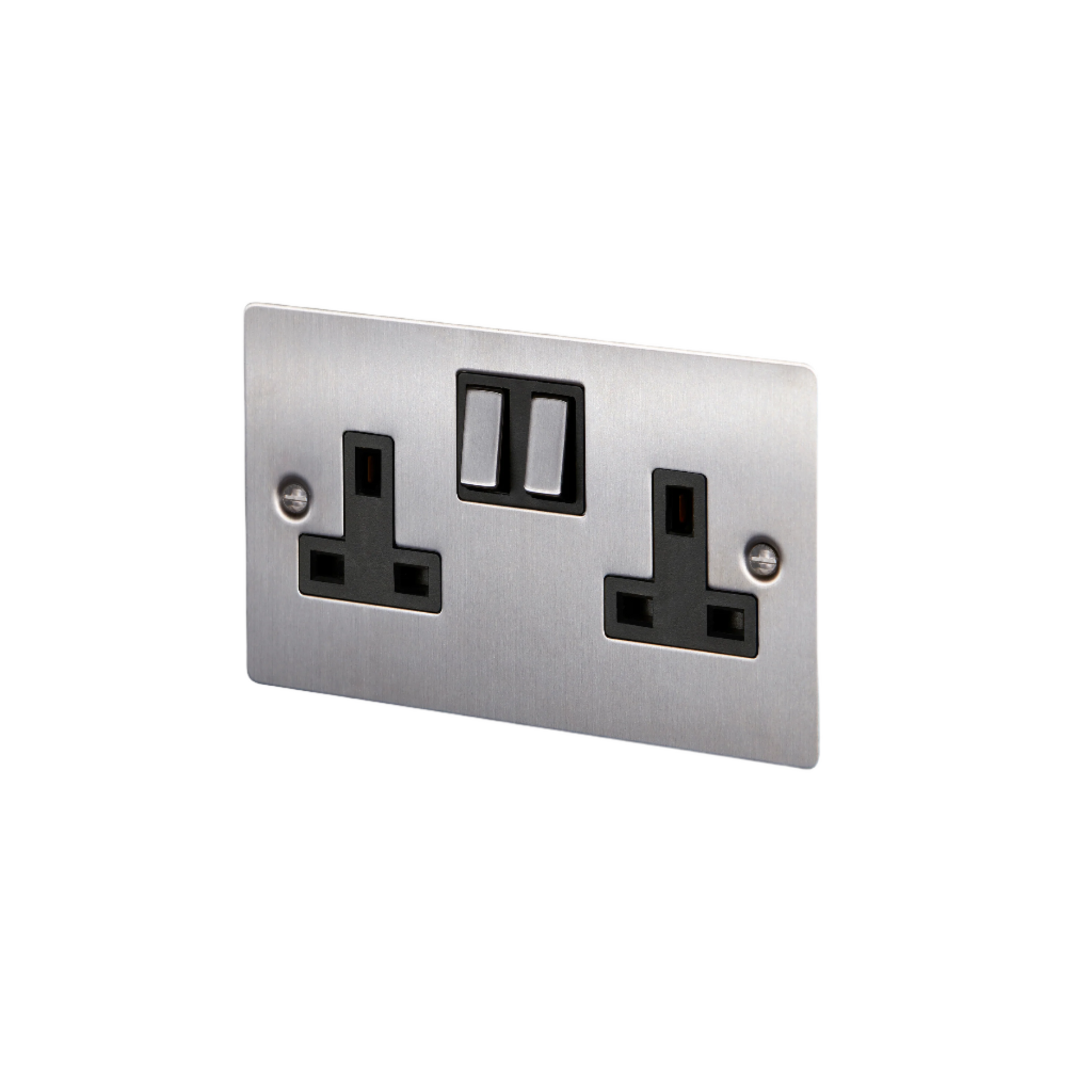 A double UK plug socket made from solid metal and finished to match our toggle switches, dimmers
