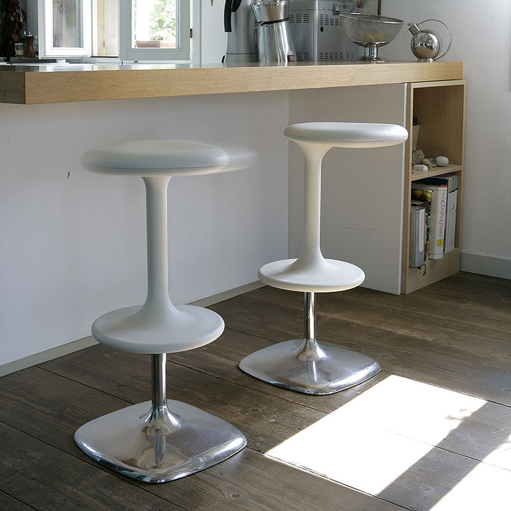 Kant Lift is a Stool with gas lift, in polypropylene reinforced with glass fibre. The base and footrest are made of polished die-cast aluminium.