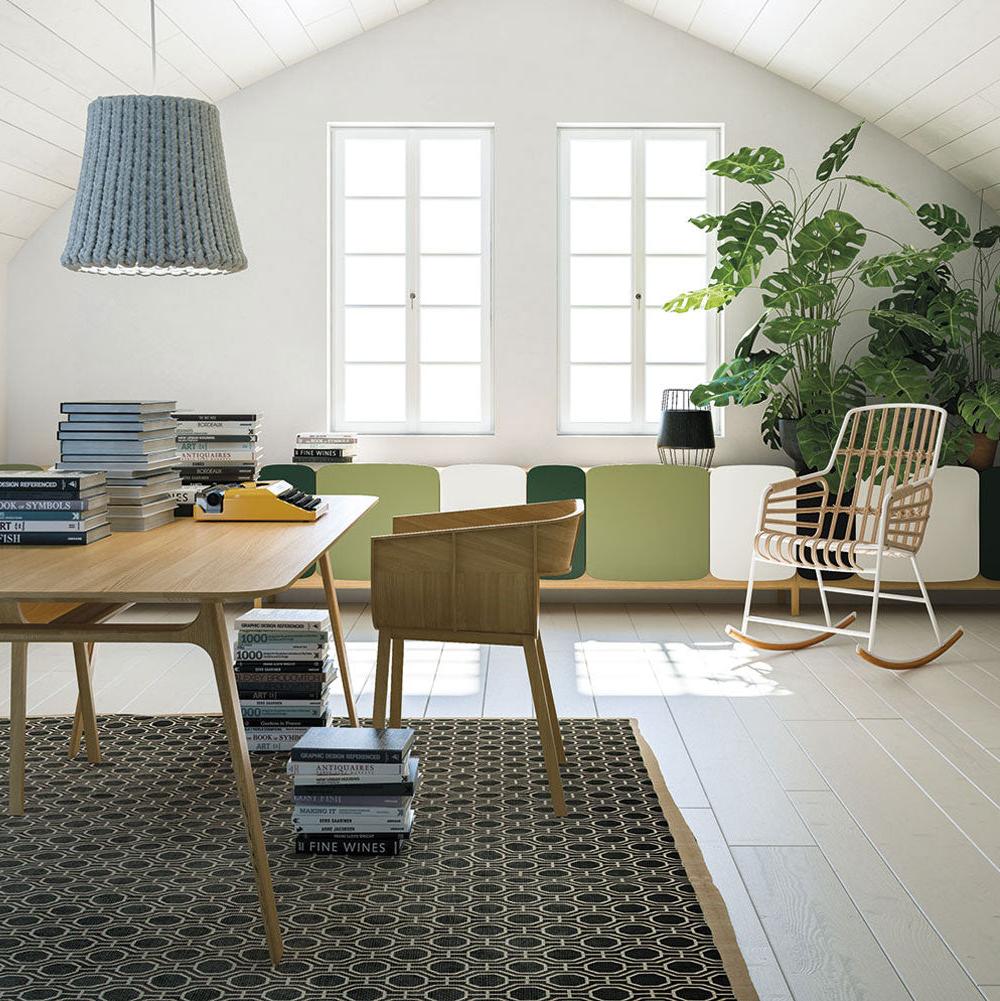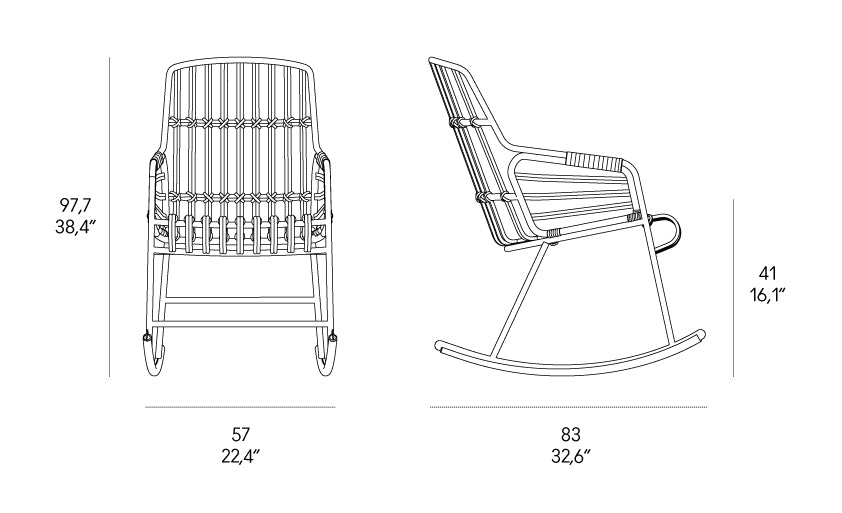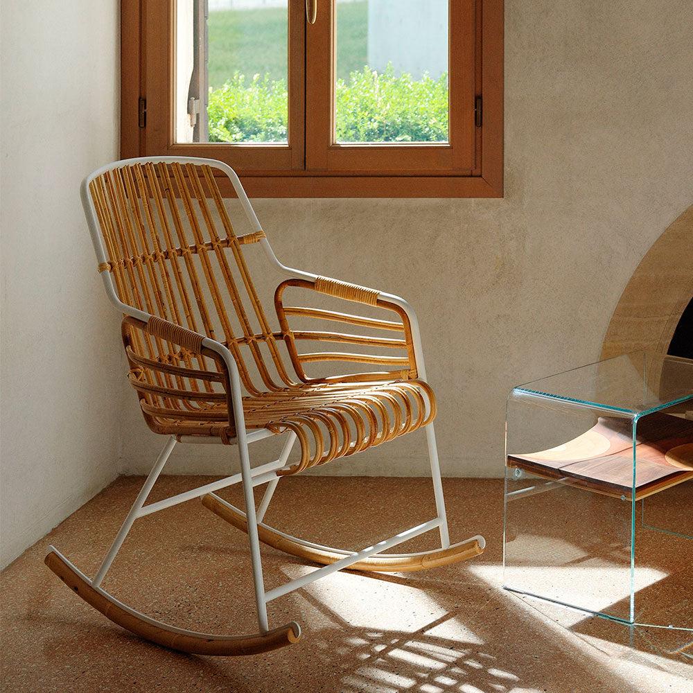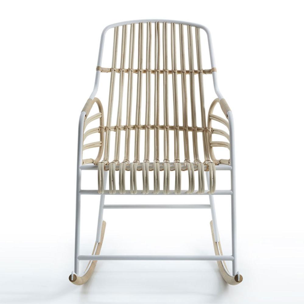Raphia Rocking is the offspring of a research project into the use of materials and how they can be exploited as furnishings. It is the perfect convergence of modernity and tradition, of technology and craftsmanship. An oxymoron that brings together two of the spirits of production in Italy: the metal industry and the small timehonoured manufacturers of rattan and wicker products. Today, there remain very few firms which conserve the know-how of rattan, where manual skills and craftsmanship combine to insure that every creation is unique. Raphia embodies this history and tradition in a contemporary context.
