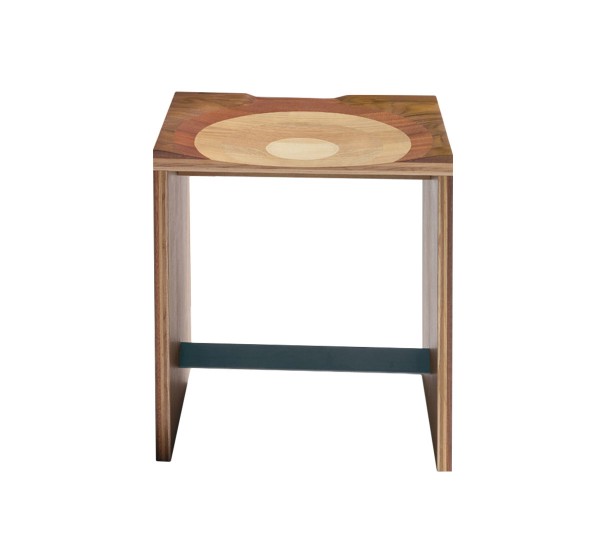Semi-transparent PVC feet. Frame in plywood composed of 5 different types of heartwood.