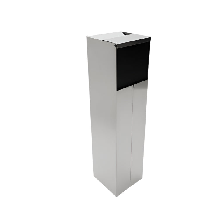 Levanzo is a standing floor ashtray with built in rubbish bin in satin finished stainless steel and anodized aluminium.