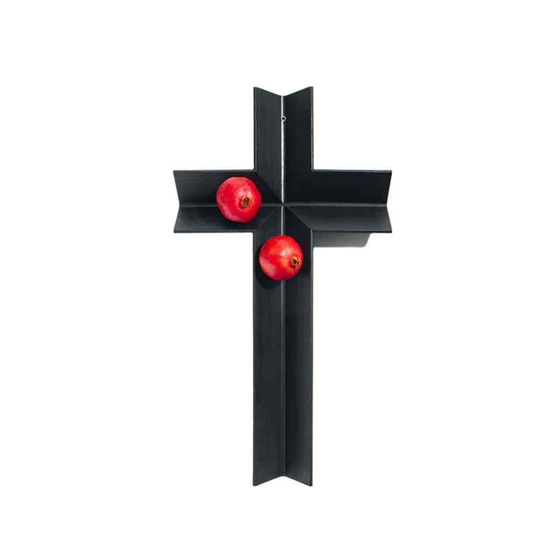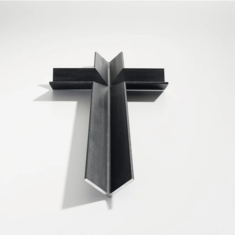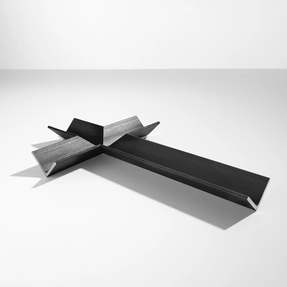 The symbol of the cross is reworked and reinterpreted by assembling pieces of an iron beam to form the shape of a cross