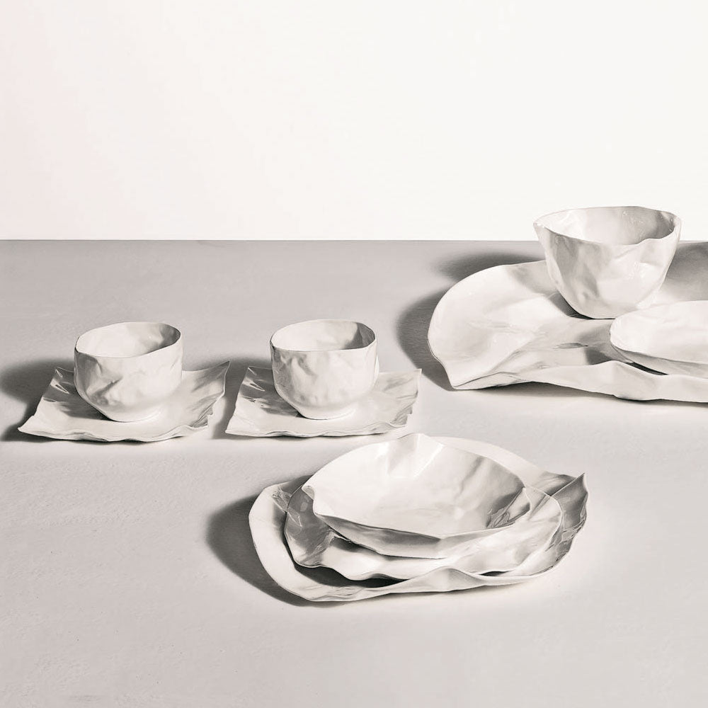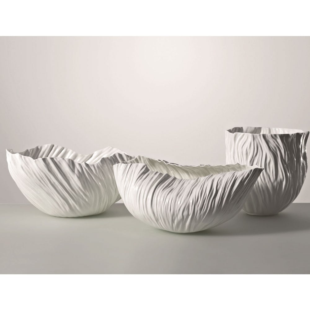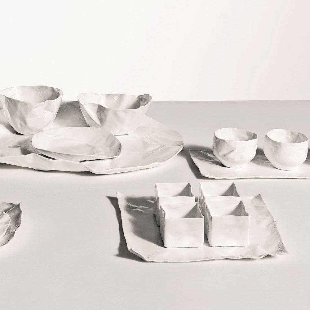 Xie Dong was born in Beijing in 1967. After graduating, she started to try various kinds of ceramic materials and techniques to express her art. She ventured in other form of art creation with different material such as cloth, paper and leather. She works essentially on phenomena, such as heaviness and lightness, on the dynamics of shapes, on elusive elements and thought a particular and complex technical process, she can bend and ripple the ceramic. Her approach to design is that of an artist able to translate into poetry great artisanal skills linked to ancient Chinese handcraftsmanship.