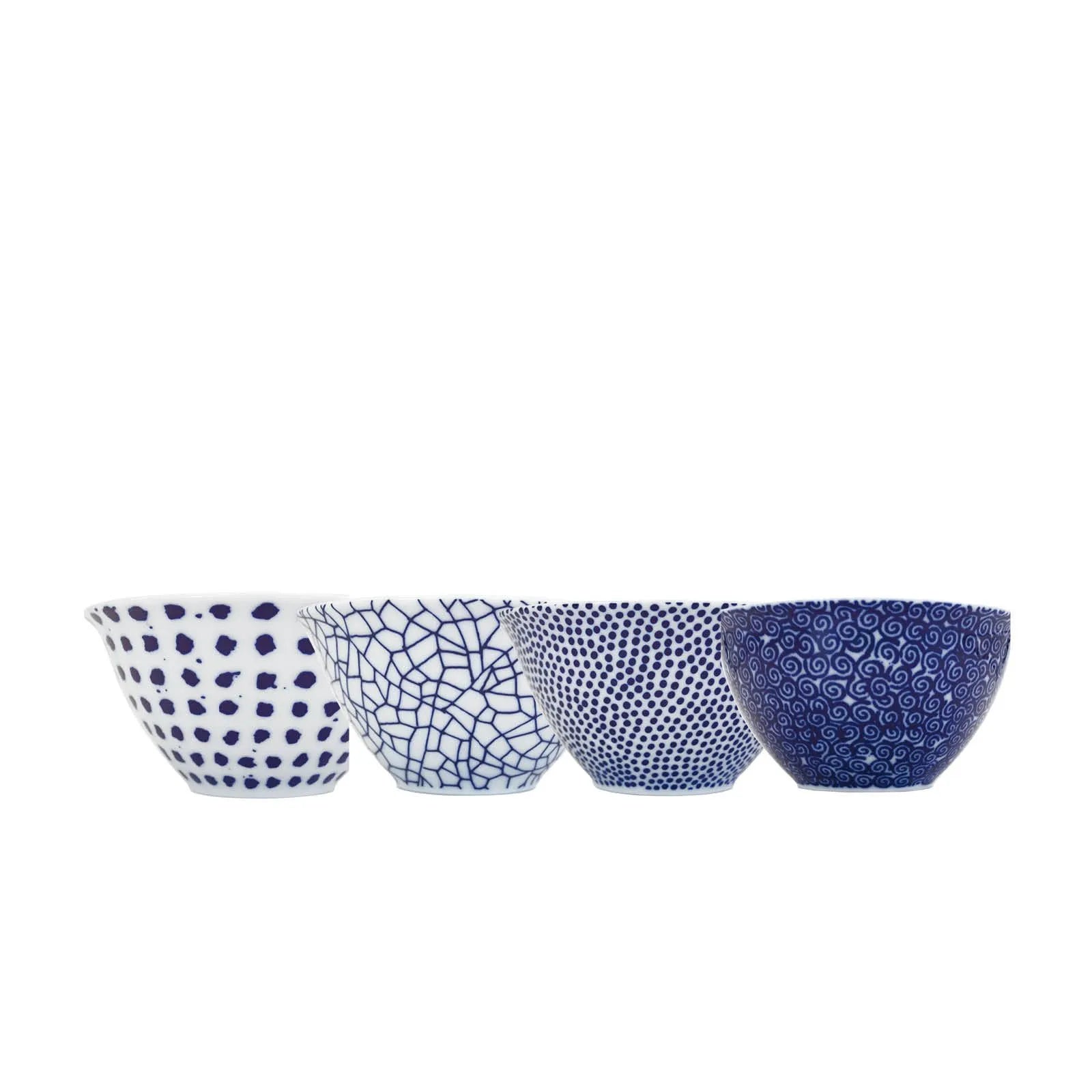 Bowl set in white porcelain with black graphic decorations. The package is composed by four bowls Ø 13 cm, H. 6,5 cm.