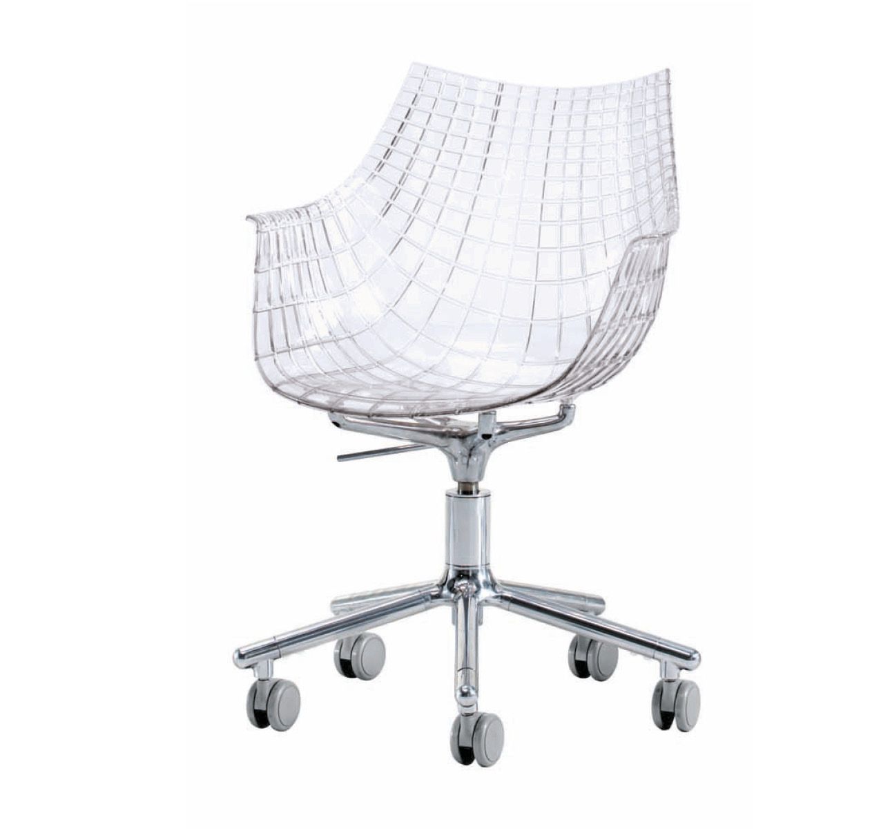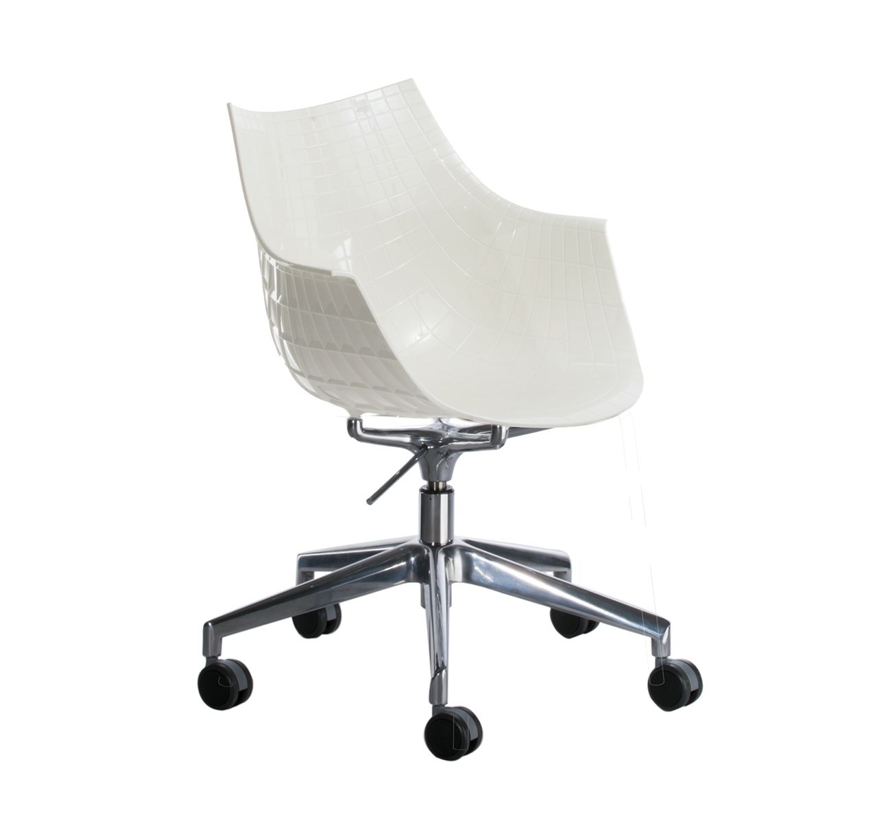 Shell available in: polycarbonate completely upholstered in leather by means of vacuum technology polycarbonate white or black colours