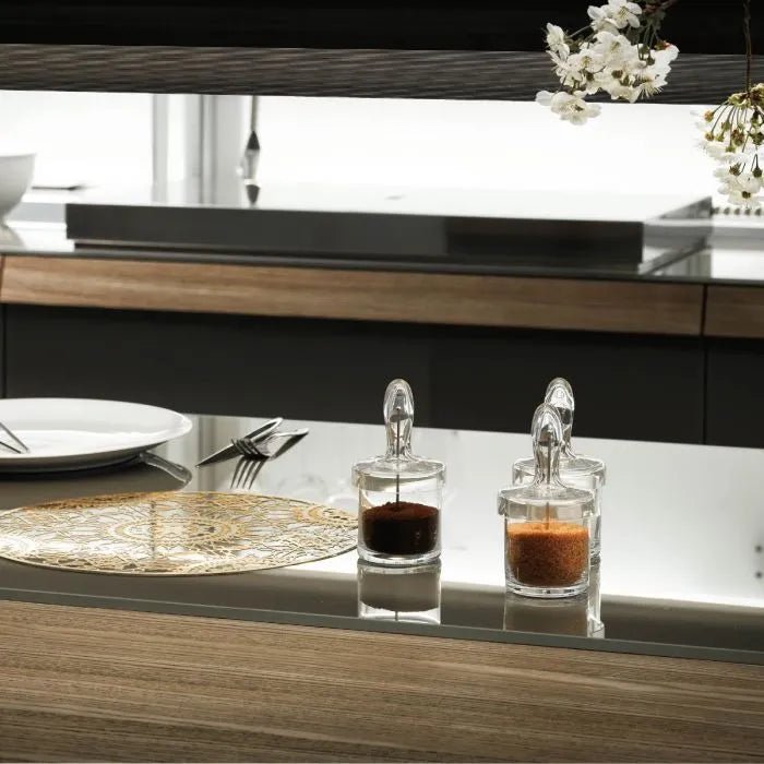 These sugar bowl and sugar spoon designed by Kazuyo Komoda perfectly convey the intimate passion that the oriental people have for the small things of everyday life.