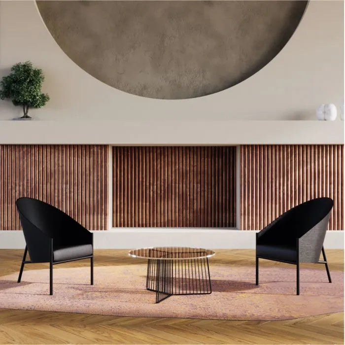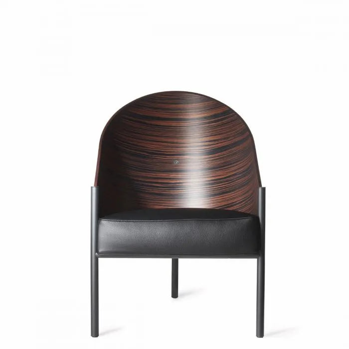 Driade reissues the lounge chair designed by Philipe Starck in 1984 as part of the famous and iconic Costes series from which it takes its unmistakable characteristics: an enveloping wooden shell and three strongly inclined legs. A small armchair with a strong personality, with an enveloping and comfortable seat, which connotes the most elegant environments both in a domestic dimension and in the hotel industry. In addition to being reproduced in the same materials and upholstery as Costes, Pratfall is offered in a wide range of new combinations and matches between different curved plywood shells and leather upholstery.