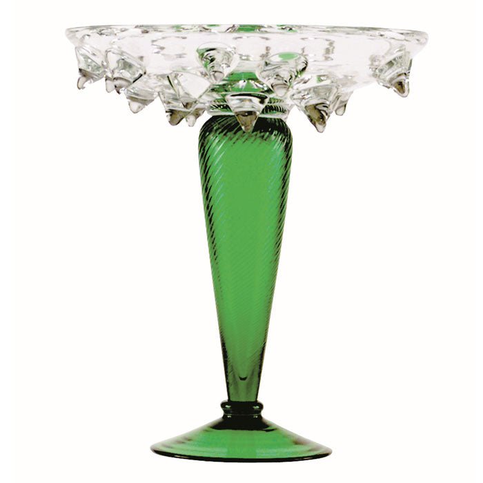 Elegant centerpiece in clear and green glass with gem decorations. Here is a baroque fantasy signed by Borek Sipek.