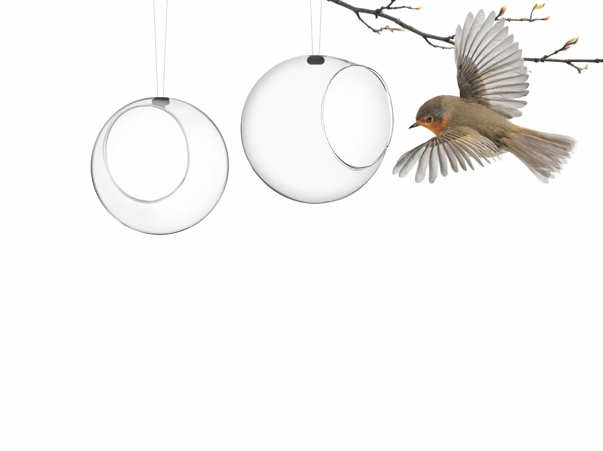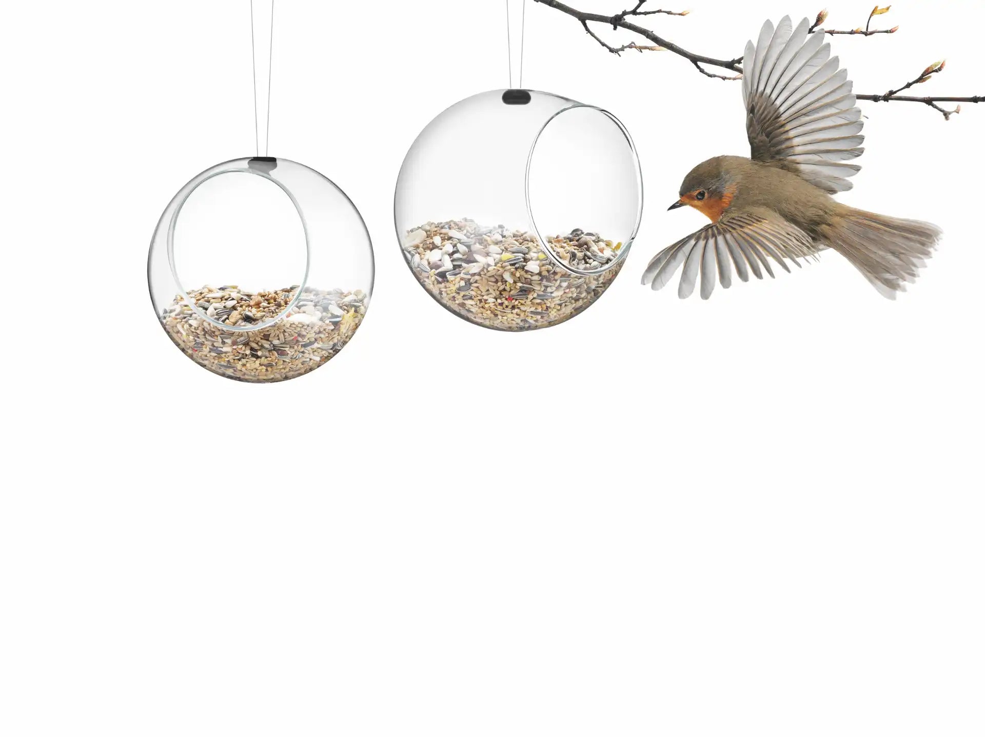 The Mini bird feeders from Eva Solo are popular feeding stations for small birds and help them through the winter. They bird feeders are designed to resemble a weaver bird's nest, and are made of clear glass so you can observe visiting birds.
