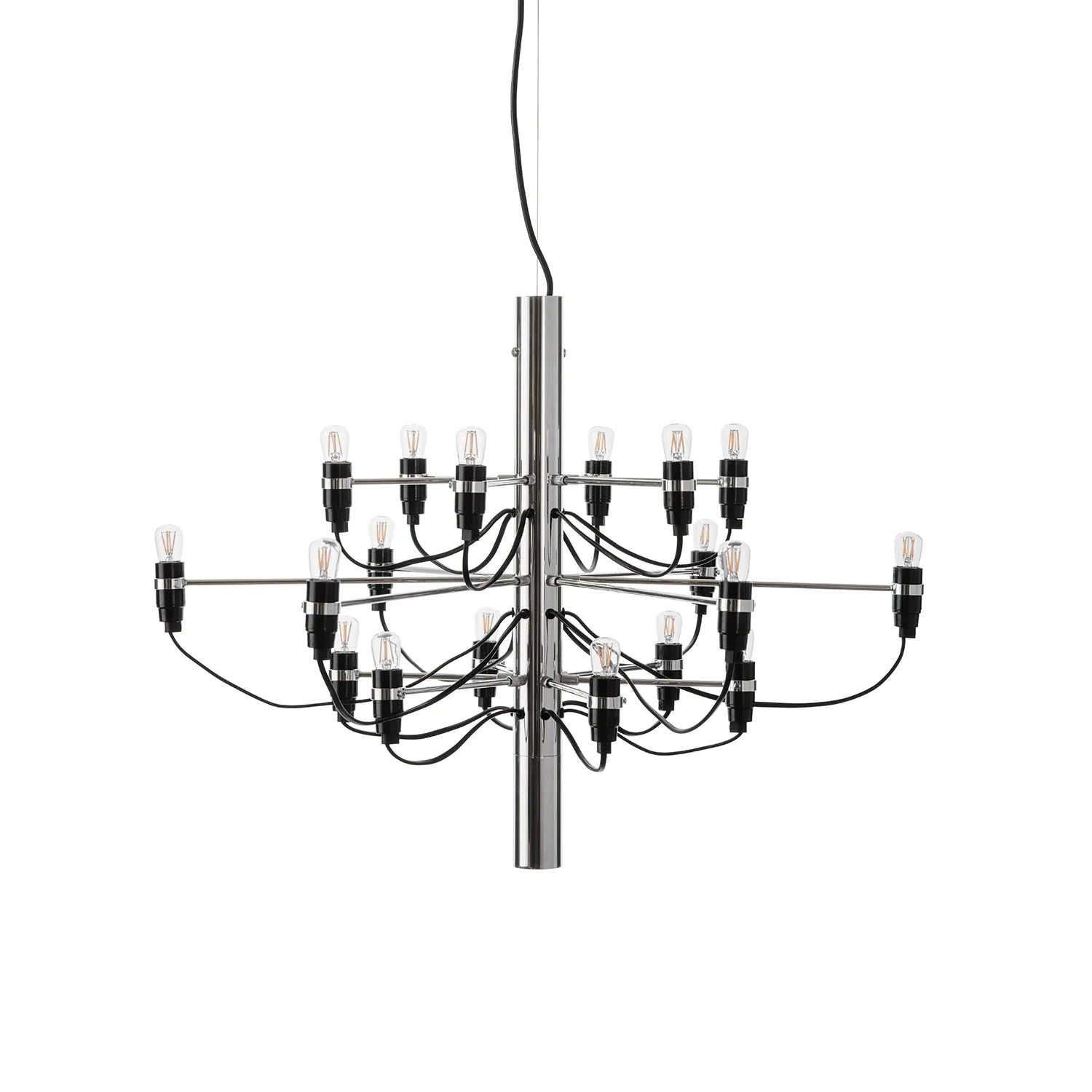 The Flos 2097-18 Chandelier is the smallest of the 2097 family of Flos Chandeliers. Originally designed by Gino Sarfatti in 1958, this newer version was realised in 2019 and is ideal for smaller rooms and domestic settings. With 18 individual lightbulbs it comes in thee finishes - black, white, chromed and brass. LED Bulbs are included and these are available in both clear and frosted options.