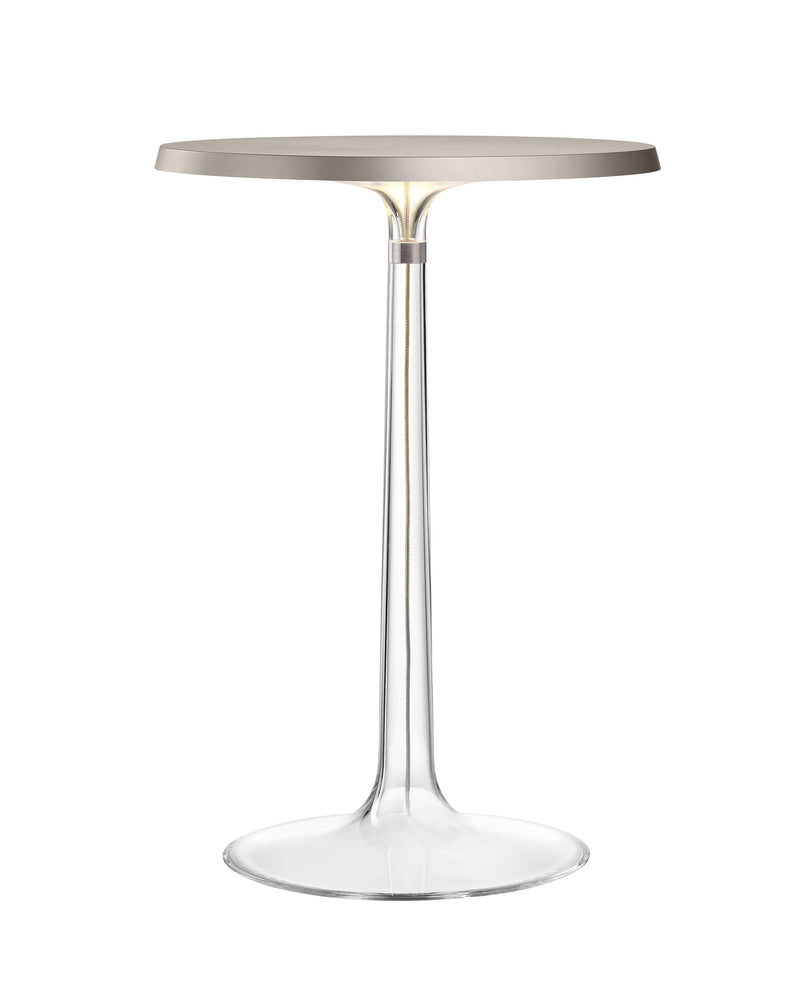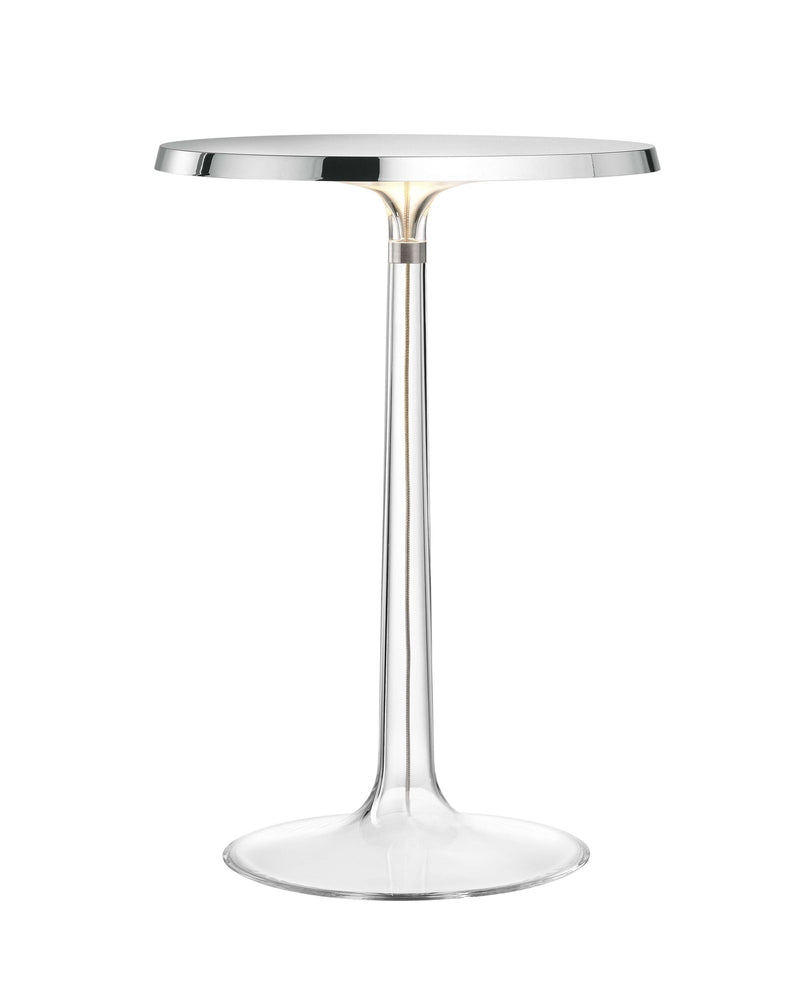 Table lamp providing diffuse light. Injection moulded PMMA clear transparent base and diffuser. Edge Lighting technology light source. Power cord length 200 cm, with dimmer switch that provide ON-OFF functions and 10-100% light adjustment. Plug-in power supply with interchangeable plugs.