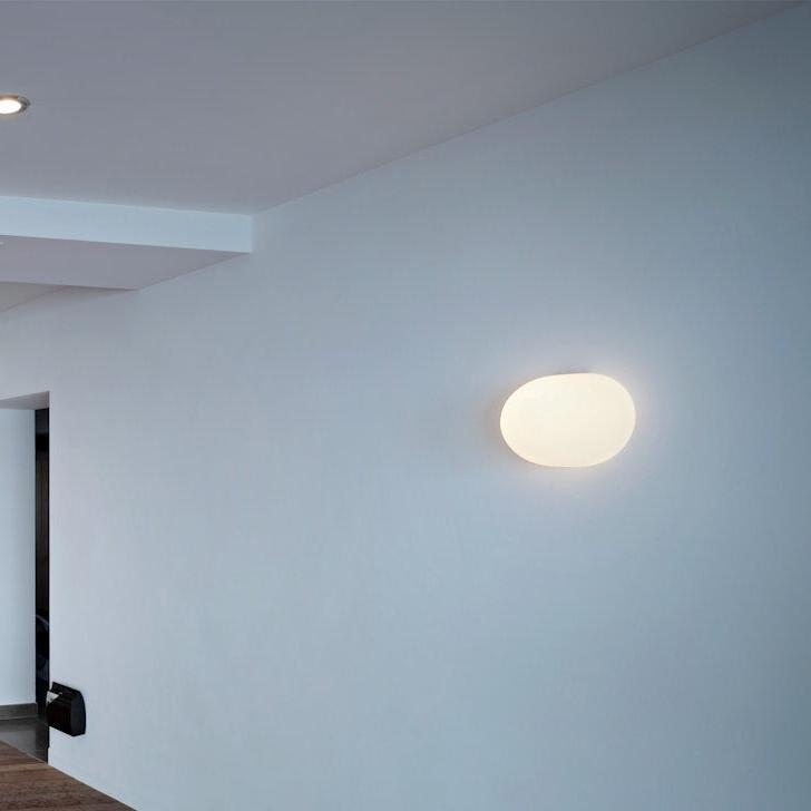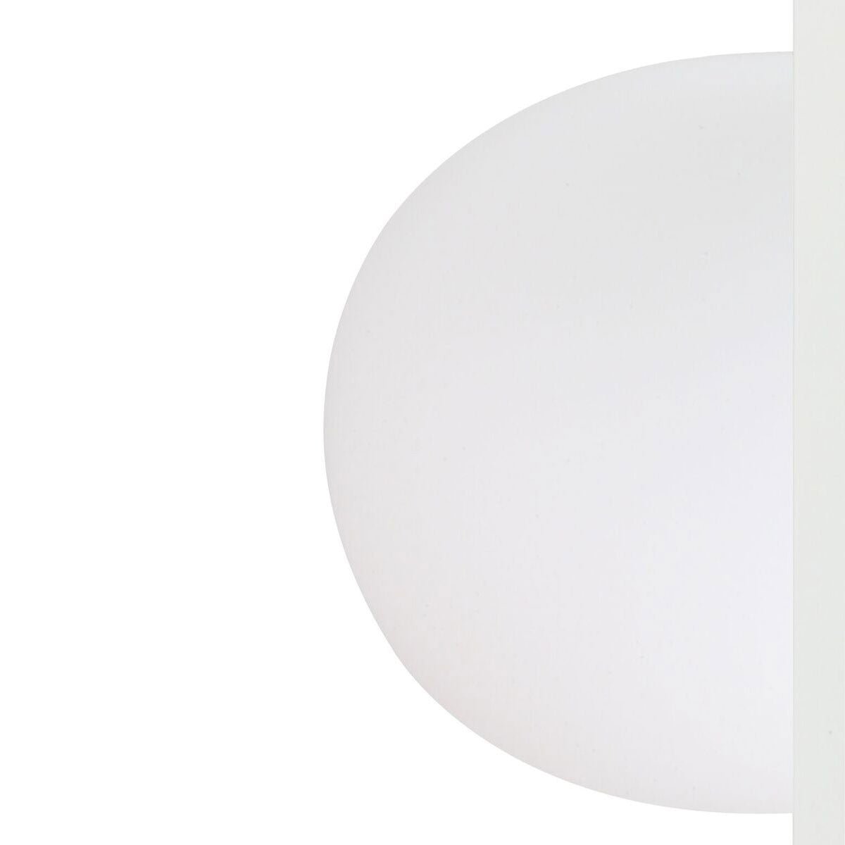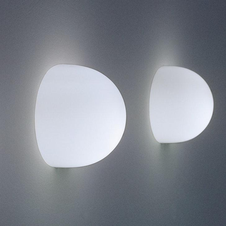 Wall mounted fixture providing diffused light. Diffuser consisting of an externally acid-etched, hand blown, flashed opaline glass and of a die-cast aluminium threated ring nut with alodine plating finish. Galvanised pressed steel wall fitting.