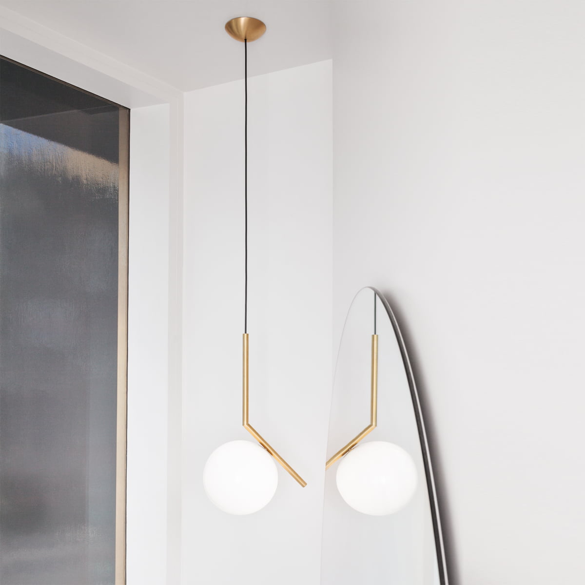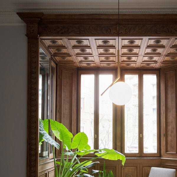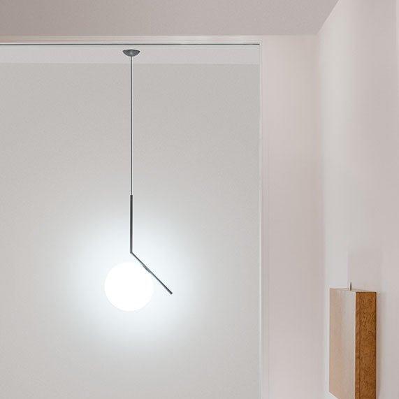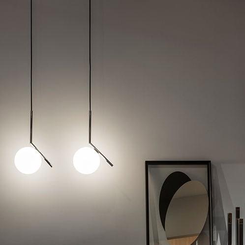 Taking inspiration from a video of a contact juggler spinning a set of spheres, moving them around on his arms and edge of his fingers, Anastassiades wanted to capture the exact moment the spheres appeared perfectly still. Contemporary with a geometric profile, the iconic IC Collection S1 Suspension Light consists of a beautiful opal glass sphere that is perfectly balanced on the edge of a Brass, Chrome, Black or Red Burgundy rod. Diffusing a delicate soft light and perfectly utilised within a hallway, above a breakfast bar or dining table, this iconic light can be hung as a stand-alone piece or as part of a striking cluster.
