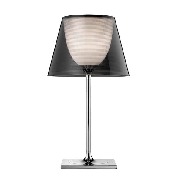 Table luminaire providing diffused lighting. Base, rod support and diffuser support in die-cast, polished Zamak alloy. Polished aluminum tubular. Injection-molded, matte black PA (Nylon) base cover. Injection-molded PC (polycarbonate) opal inner diffuser. Outer diffuser in transparent or fumée PMMA (polymethylmethacrylate).
