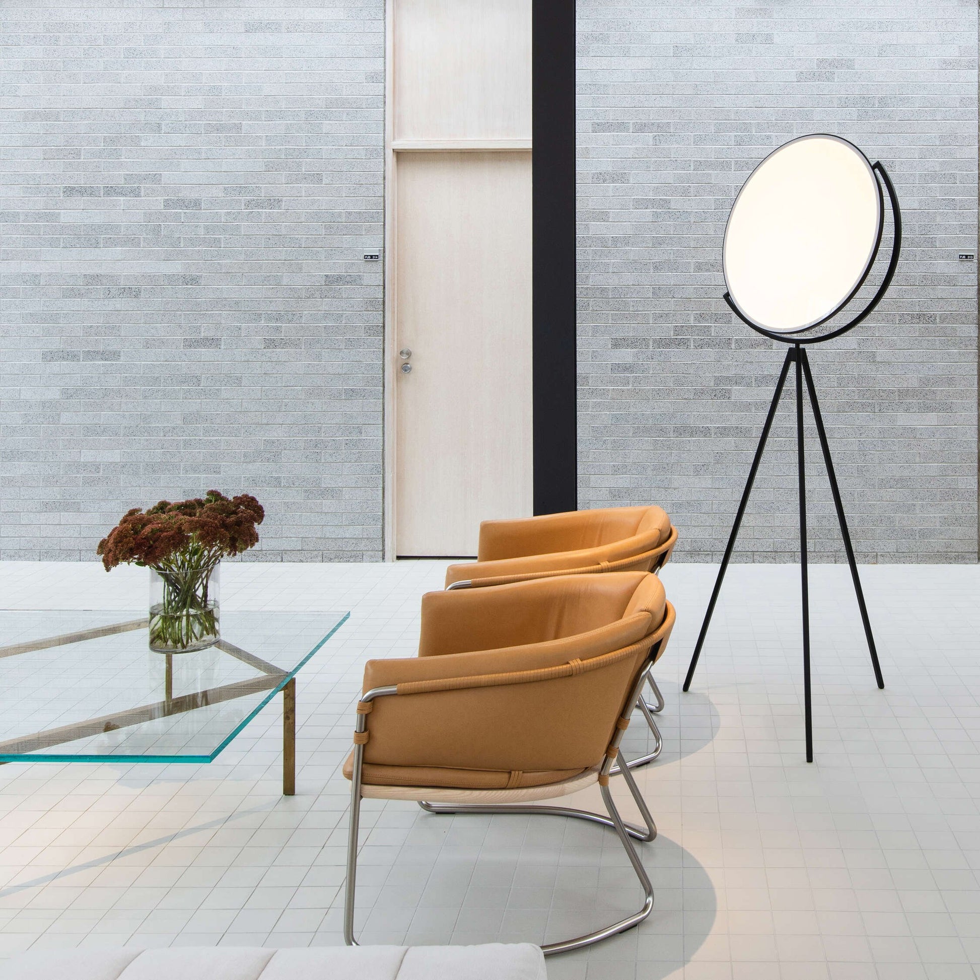 Flos Superloon Floor Light Jasper Morrison - Superloon is ideal as an ambient light or a reading lamp. Its light emission is adjustable in intensity and temperature – from warm to very warm, just like the real moon! Warm Tone Dimming is activated through the optical sensor on one of the stems.