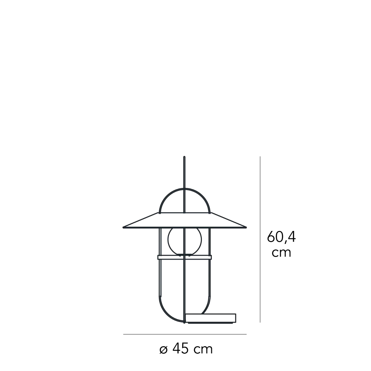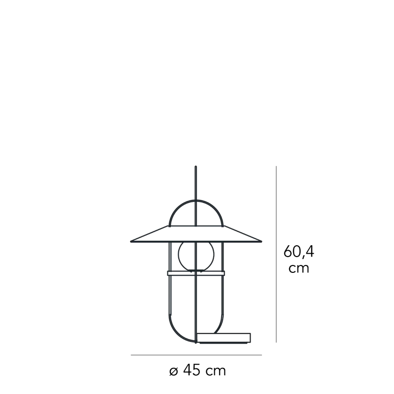 Table lamp with diffused and dimmable light. Galvanized metal frame. Base made of grey Carnico marble. Spherical diffuser made of opaline blown glass with satined finish and top flared diffuser internally painted and satined on the outside. Black power cable, dimmer and plug. Plug-in power supply with interchangeable plugs (UK - USA - UE- CHN). Integrated led.