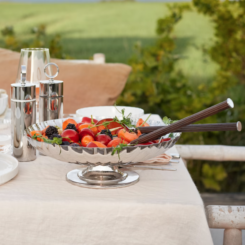 The salad servers are beautifully made from mirror-polished stainless steel with smoked oak handles.