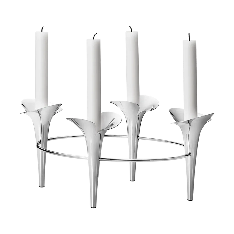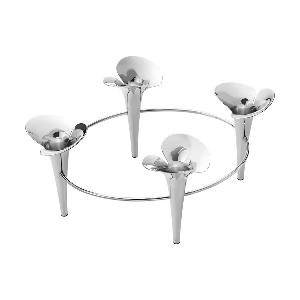 This taper candleholder in polished stainless steel can hold up to four candles and features the defining elements of the collection, which bring the beauty of nature into our homes.