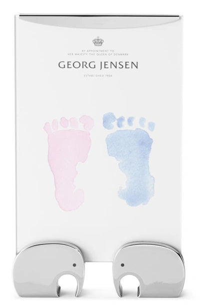 Featuring two small elephants in the iconic Georg Jensen design, this standing picture frame will treasure your most wonderful memories. Both the elephants and the stainless steel holder can easily be repositioned to allow the photo frame to be positioned both vertically and horizontally.