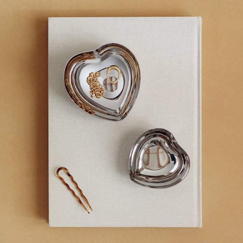 This heart-shaped bowl is a thoughtful token of affection. Its stainless steel form makes it a versatile addition to any desk or dressing table, offering a practical way to hold jewellery and small items, or to serve food such as nuts and sweets.