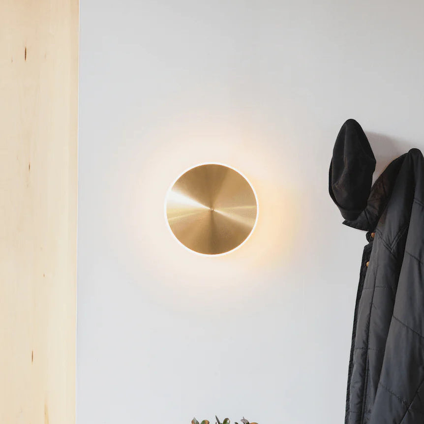 Chrona lights create a luminous glow by combining spun brass and diffused acrylic.