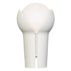 Imitating nature, the globe bulb is shelled by two petal-like forms which appear to simultaneously hold and protect the light. Interact with Bud’s bulb to activate the light and dimming function. The tapered cylindrical form encases the translucent globe on top of a thin silicone pad that allows it be pushed to adjust dimming. Push down on Bud’s bulb to activate the light and press again to increase the light intensity from 25% to 50% to 100%.