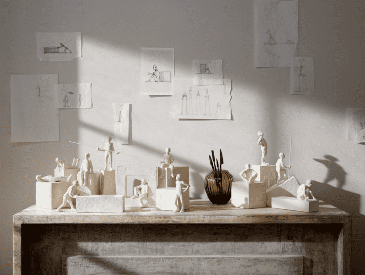 Maleke Bjelke is a Danish sculptor whose work derives from long experience from the theatre world. Her sculptures often model different human characters, mindsets and thoughts, and the interaction of a figure and the surrounding space is also an essential theme in her work. Bjelke graduated from the Danish Design School in 1993, and in addition to sculpting, she has worked with theatre and costumes for over 20 years.