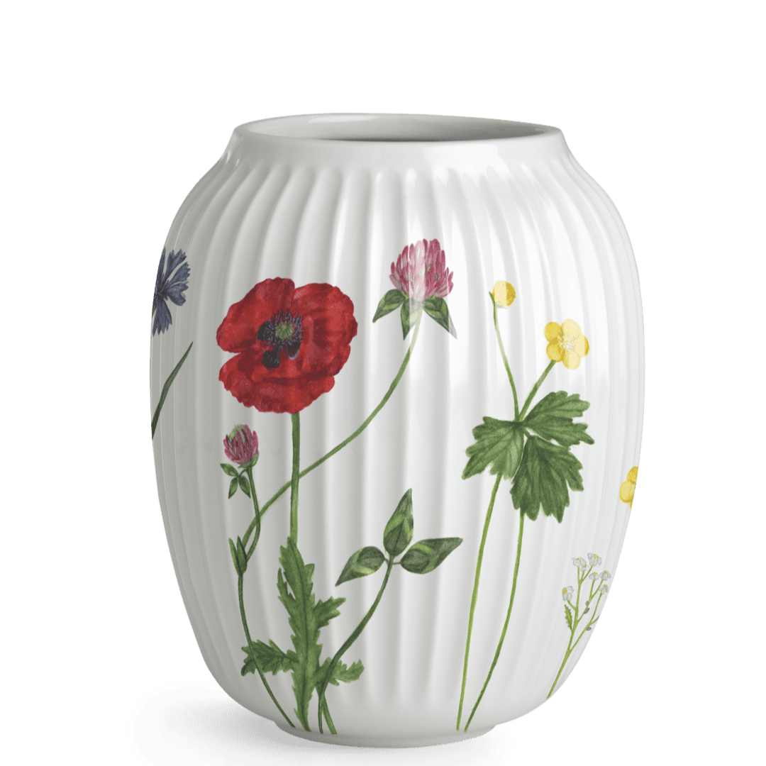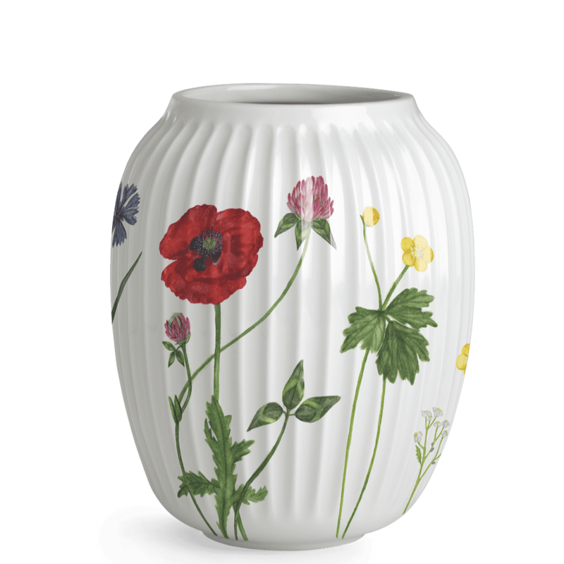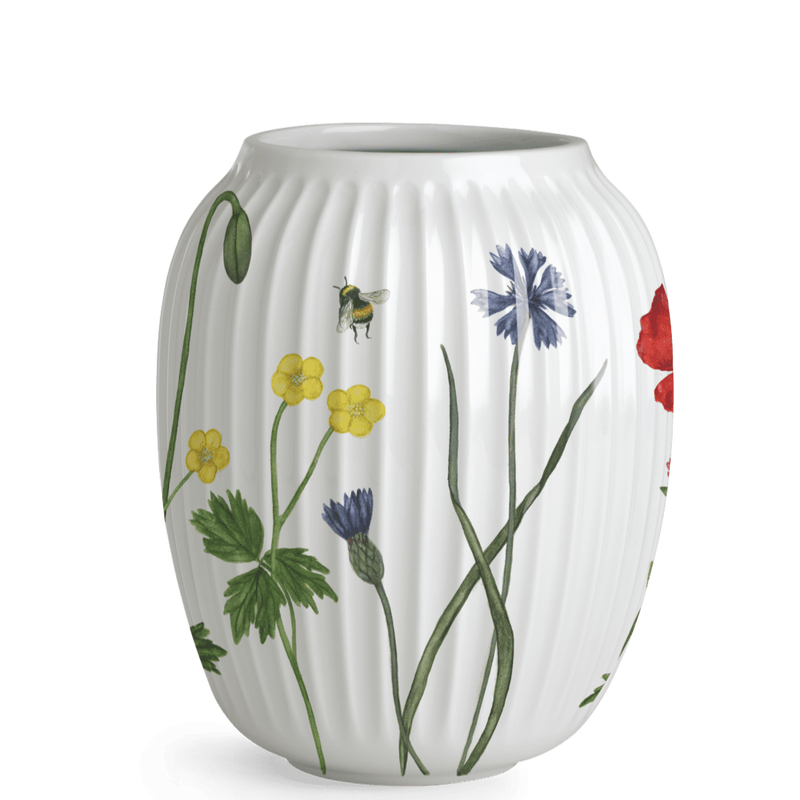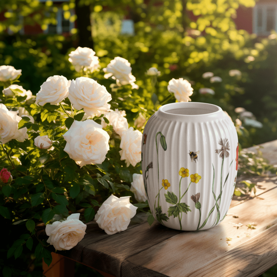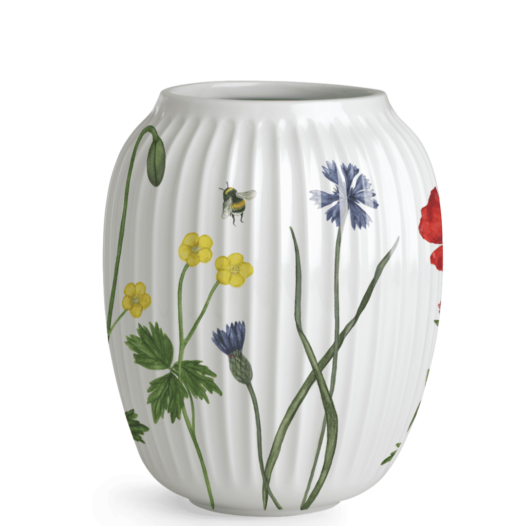 With Hammershøi Summer and the wildflowers of the meadows, we help announce that summer is upon us, just as the wildflowers remind us to enjoy the moment with their diverse blooming, often lying like a carpet over the meadow, while promising to bloom again in the coming years. The wildflowers motif is painted in the same way as the other themes in the Hammershøi Summer series, where plants and flowers almost move spontaneously across the classic grooves on the white ceramic pieces.