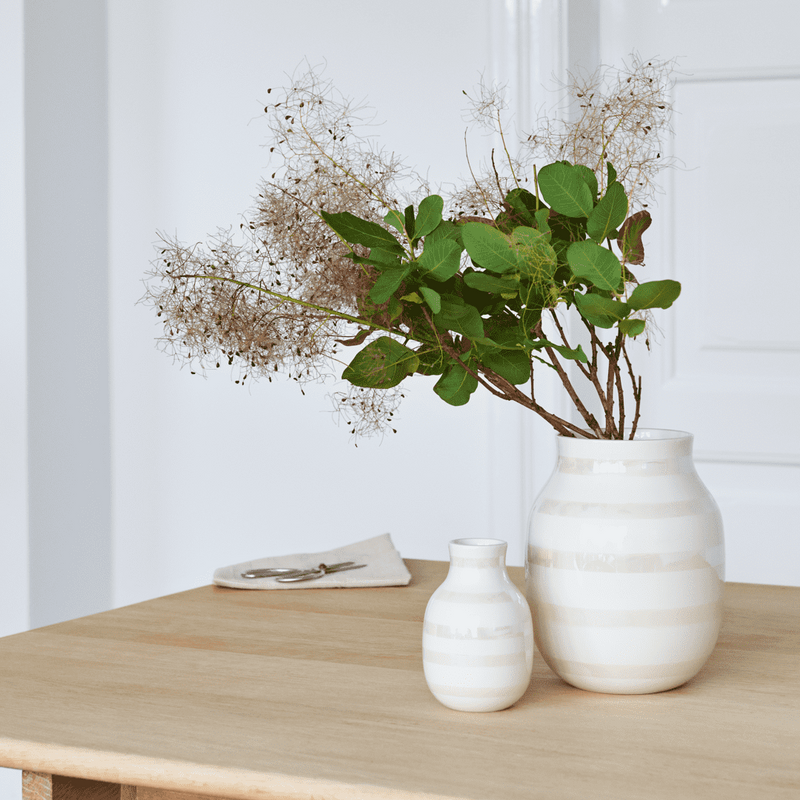 The elegant Omaggio pearlescent vase is a perfect design statement for the home. The discrete colour offers a warm comment to the ceramics and becomes an elegant interpretation of the classic, colourful Omaggio vase. The pearlescent colour creates a wonderful, subdued tone-on-tone look that matches elegantly with any stylish décor. Let the exquisite Omaggio pearlescent vases bring warmth into your home.