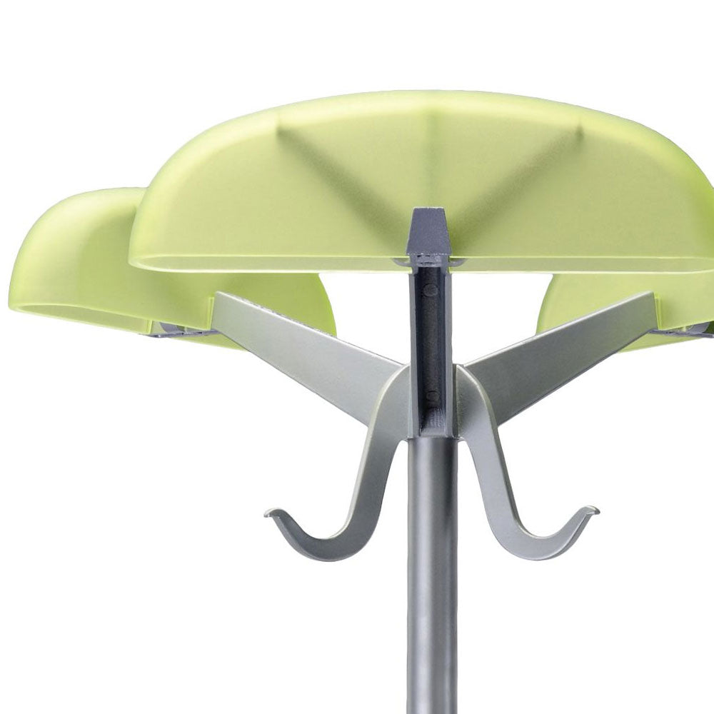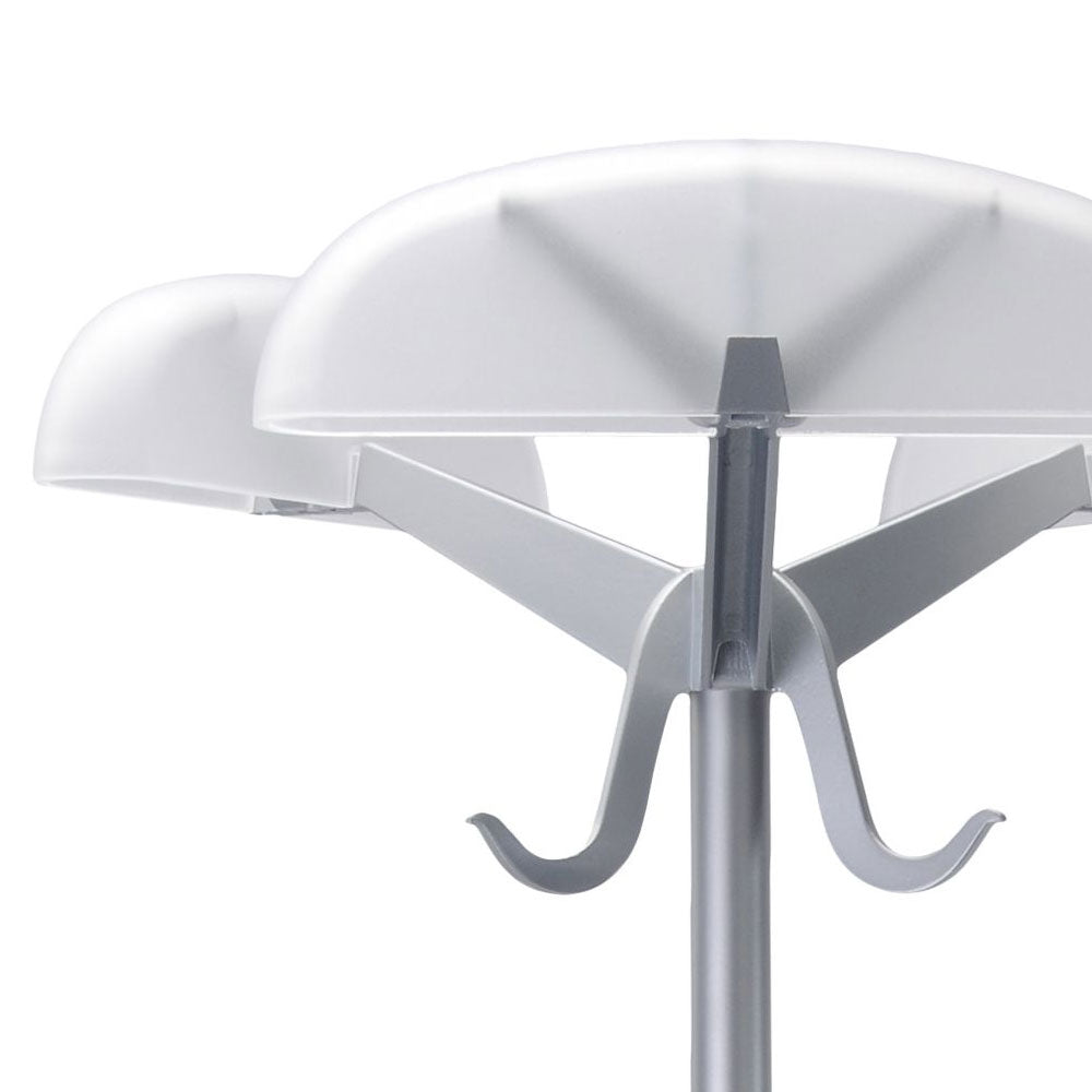 The elegance of the design is accompanied by the refined combination of finishes: the aluminum support climbs into clothes caps made of a precious semi-transparent plastic which are offered in ice, orange, citron yellow and cobalt blue shades. It is a masterpiece to savor each and every day.
