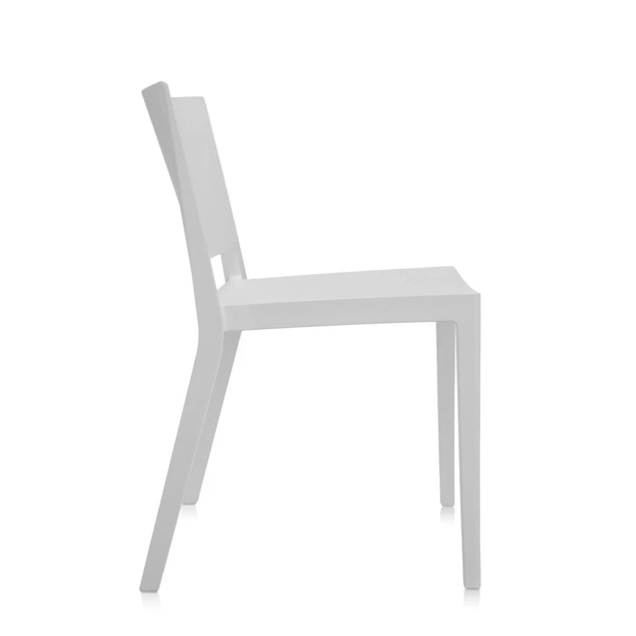 A light, essential and rigorous chair. Its square line is designed by Piero Lissoni, with a wide seat and a wide, low backrest. Created for use around tables, it was born in a range of both gloss and matt colours. The particularity of the material used makes it resistant to collisions, scratches and atmospheric agents.