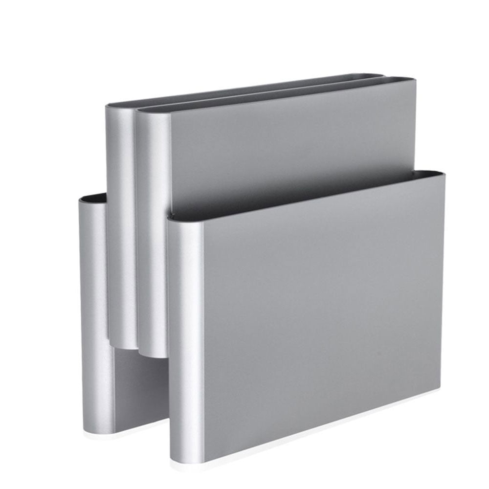 Kartell Magazine Rack 1972 by Giotto Stoppino is a 4-pocket magazine rack with a central handle for easy carrying. It features a distinctively minimalistic shape but is nonetheless an aesthetically pleasing object with versatility of placement. This Kartell classic perfectly combines practicality and style, with essential features and the central handle ensuring convenient mobility. The rack is constructed with bulk-coloured or painted knock-proof PMMA.