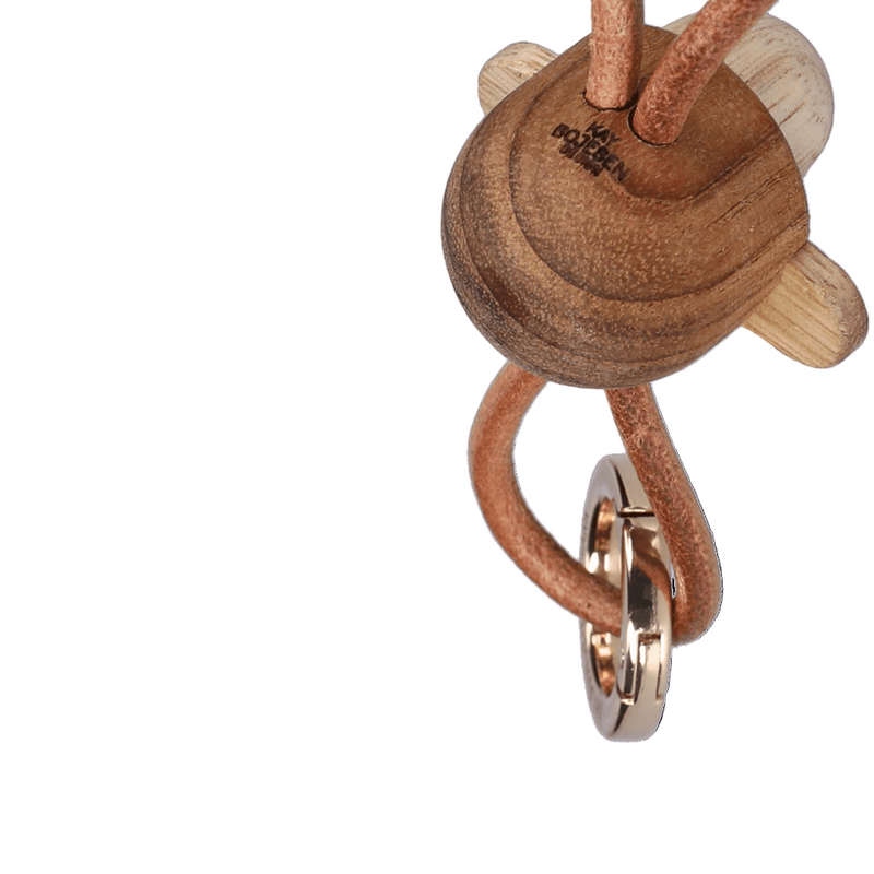 This Kay Bojesen keychain features the monkey’s signature head, crafted in the familiar composition of beautifully oiled FSC®-certified teak and controlled limba, and is completed with an elegant and practical natural-coloured cord in genuine leather. The cord can be adjusted up and down in relation to the figurine, allowing you to create your own unique look. At the top, a large gold-toned keyring engraved with Kay Bojesen Denmark serves both as a stylish detail and a functional element with its practical carabiner clasp for easy opening and closing.