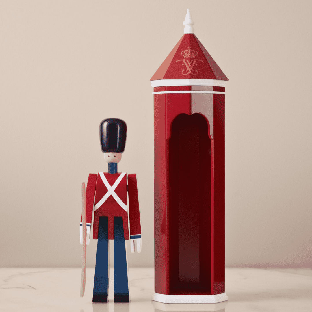 This unique sentry box is like all the famous Kay Bojesen Guardsmen inspired by one of Denmark’s national symbols from Amalienborg Palace Square. Kay Bojesen created the soldiers for the first time in 1940 in honour of King Christian X’s 70th birthday as a tribute to the Danish king. With the new sentry box, you can celebrate your birthdays at home in style and honour the new King Frederik X.