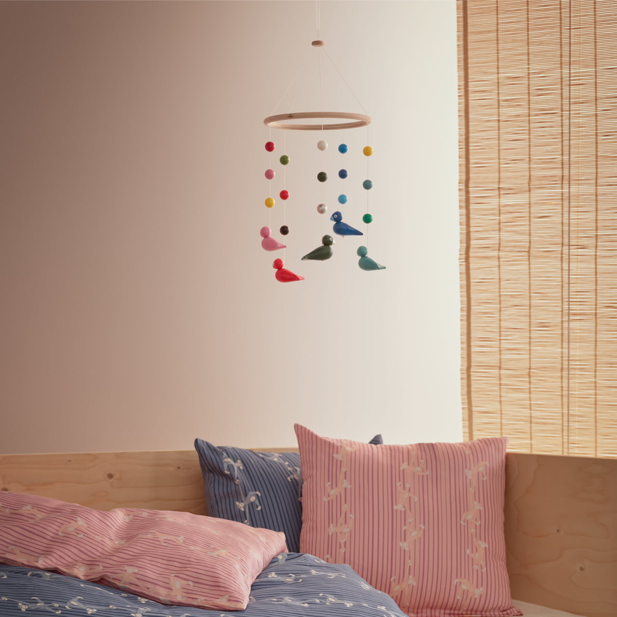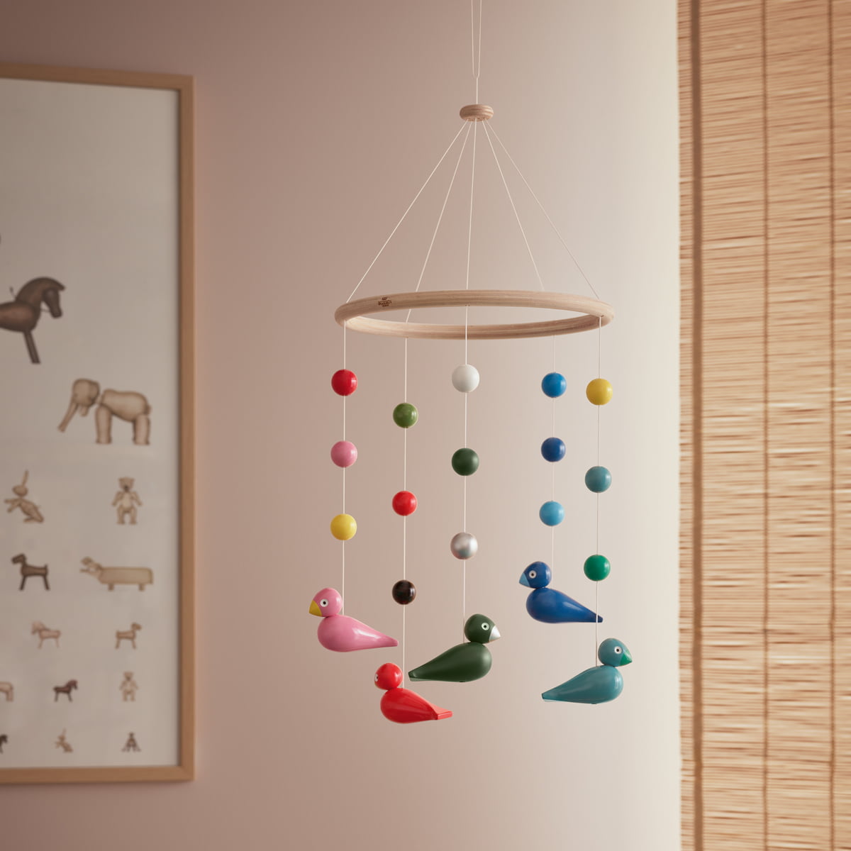 The Songbirds Mobile from Kay Bojesen brings the Danish love for wooden toys into the children's room.