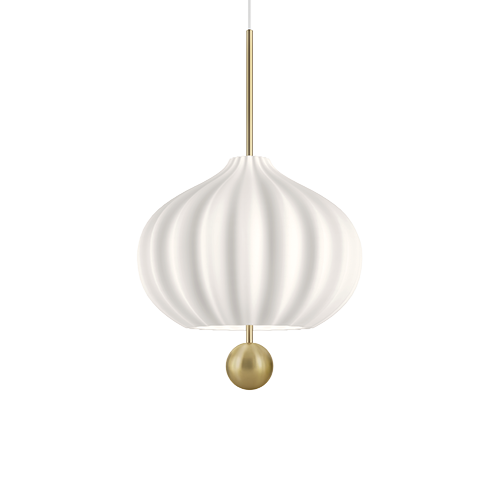 As in a sophisticated collection of botanical drawings, the delicate lines of Lilli recall the beauty of a rare flower. The delicate inverted corolla of the Martagon Lily is reinterpreted in an original lamp. The soft shape of the white opal glass diffuser is perfectly combined with the brass pistil to create an even more elegant effect