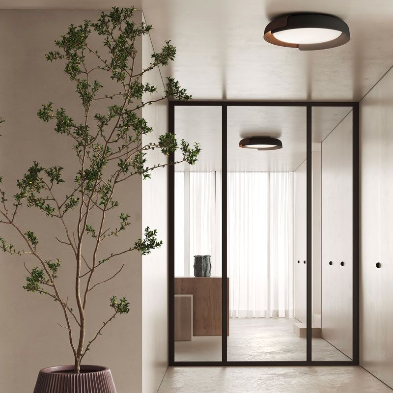 Highly decorative with an architectural look, Dala blends fluid lines with a strong design. The two outer metal casings wrap around the large diffuser, overlapping like the petals of a flower. In two different sizes, featuring a sophisticated contrast in colours, reminiscent of the natural shape of the flower’s corolla which envelops the light.