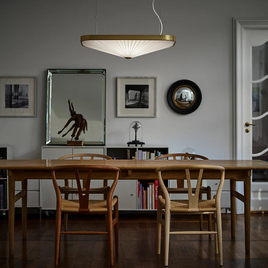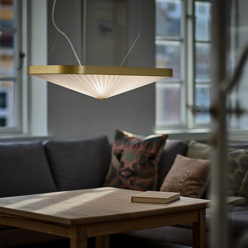 The Celine pendant is a stylish and modern choice for any interior. With an outer frame in solid brass and a folded inner shade, the Celine pendant creates a beautiful, soft light that is perfect for the living room, kitchen, over the dining table, or in the office. The Celine lamp is ideal for those seeking lighting that is both functional and aesthetic.