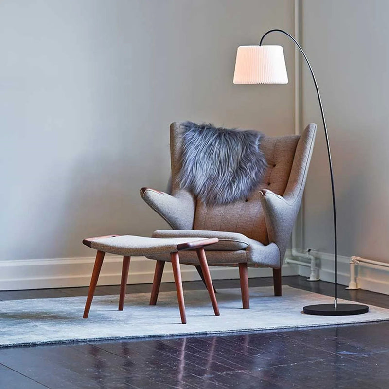The Snowdrop series highlights our proud tradition of hand-folded lampshades combined with a minimalist design language. Its iconic shade emits a soft and ambient light, making the floor lamp perfect for a reading corner, living room, or office.