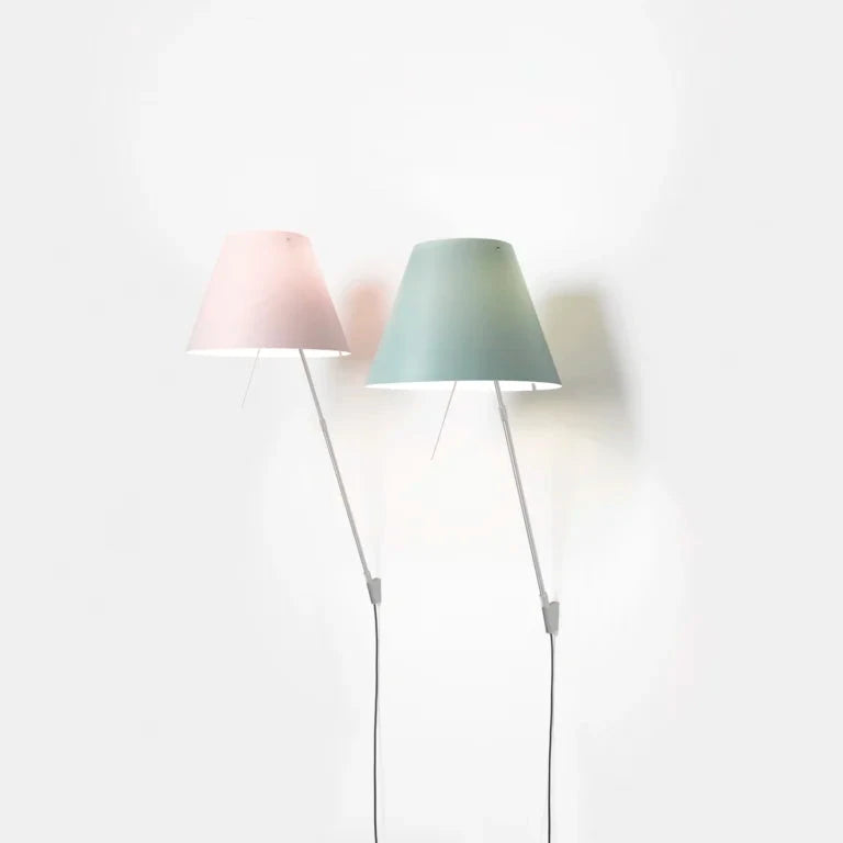 In Costanza ”the switch has moved!” The lamp uses a ON/OFF rod-switch close to the light, which has only to be lightly touched to adjust its on-off. The light and washable shade, resting on two points of balance and therefore capable of oscillating if bumped, diffuses a warm and pleasant light. Its unmistakable, subtle but structurally solid profile fits naturally into any interior, Costanza poses no restraints on matching styles. It is fascinating and inimitable and can recreate the most traditionally accepted atmospheres as a domestic image. It is always in the vanguard with its refined technology.