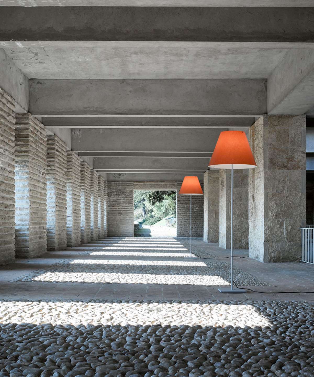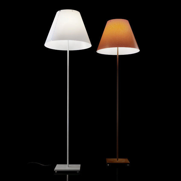 The outdoor version is able to give light to terraces and garden with elegance and efficiency. Available with off-white, rust, or light green shade. Stem is white, rust or aluminium. Stainless steel painted stem and base polycarbonate diffuser