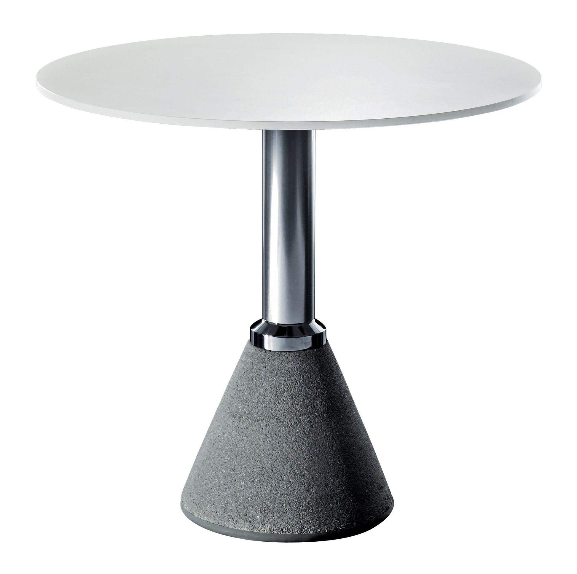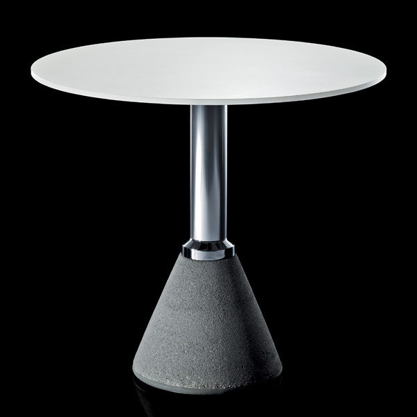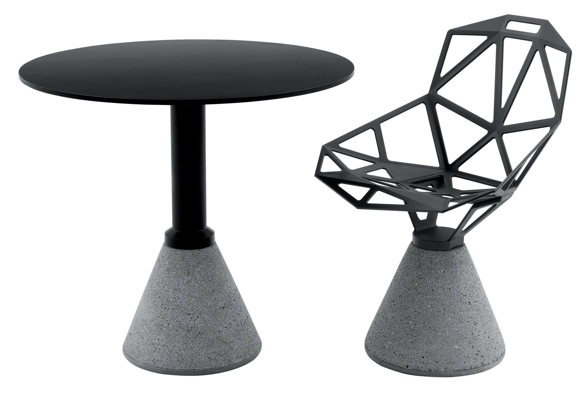Material: frame in anodised aluminium tube. Concrete base painted transparent clear.